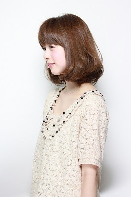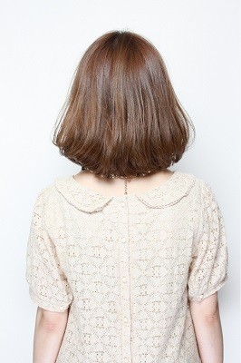 根元からふわっと乾かしていただき、毛先を32ミリのアイロンでワンカールさせます。 簡単にフワフワボブの完成です!