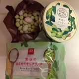 写真のお菓子です、青豆のお菓子・・・・・!!!まさに野菜スイーツですね。はじめて食べましたが、一つは、外はカリッとしてチョコレートと枝豆の風味が口に広がる感じでした。もう一つは、あきたこまちのおこげで、程よい甘さと食感でした!!