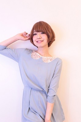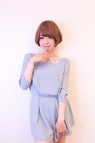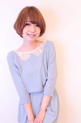 重めのカットラインのショートボブ。ふわっとパーマとベージュ系カラーでより透明感と柔らかさを出しました。ショートスタイルでも女性らしいスタイルです!!